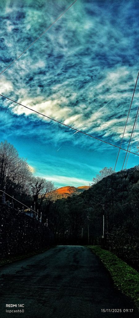Hoy iremos de garbeo por las nubes que andan preparando la nieve. Estamos mordiéndonos los dedos de desazón invitada. Inventada?Los nervios nos delatan. Nos quedamos quietos. Olfateamos el viento. Un sabueso, ronco tenor, en Si menor, arranca el piano ma non tropo disparatado, a la que el coro irá entrando a deshoras. Deshonra? El jaleo viene de abajo. El viento también. Y a mí me pillan desbrozando un mini paso entre los zarzales, las ortigas y un tronco caído. Parece un nogal.